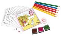 This Castle kit includes 18 templated pages with a castle related theme, 6 quality pencils, 3 ink pad colours plus 15 fairy castle related stamps. All ink is non toxic and 100% washable for peace of mind.